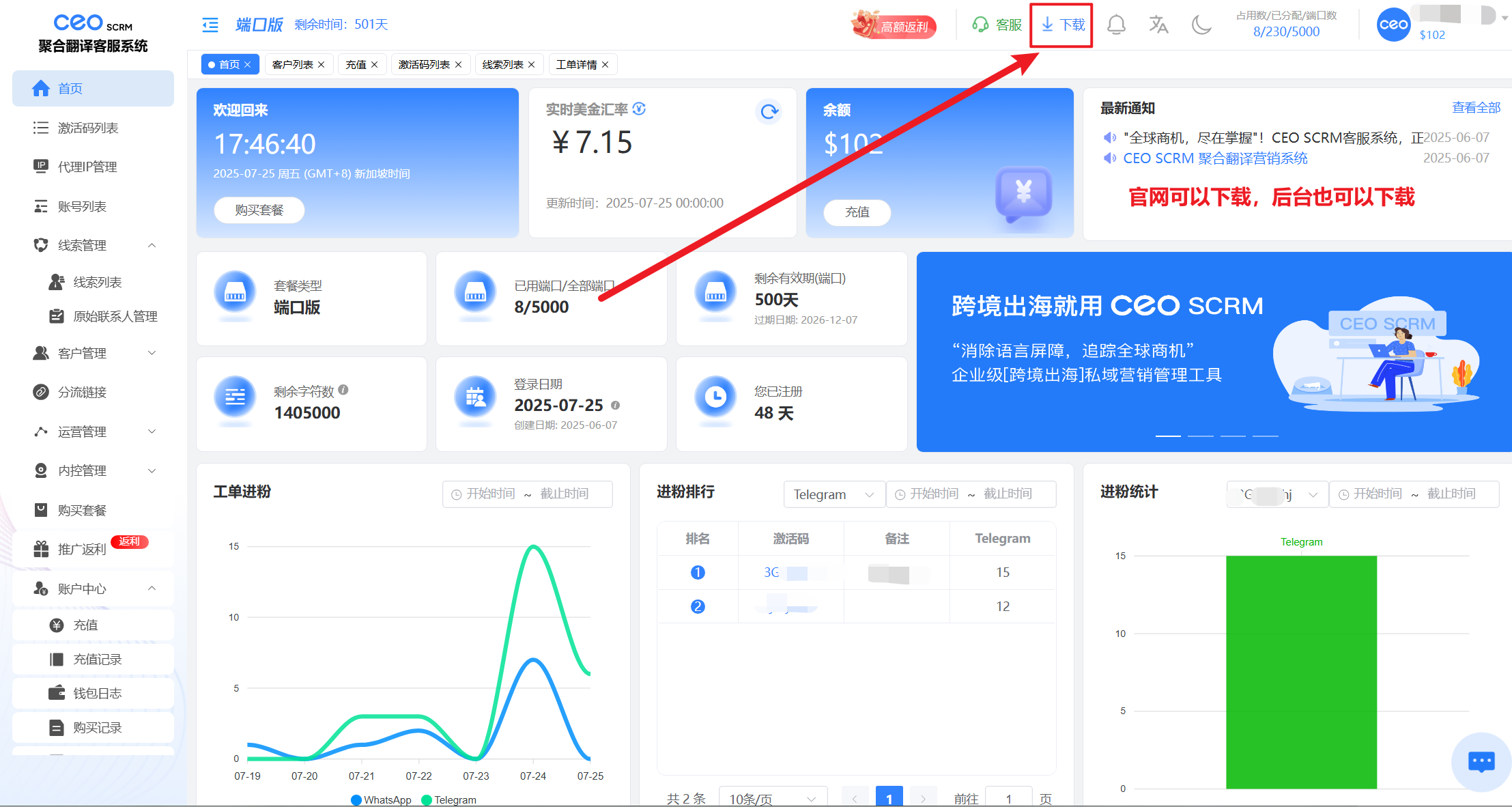 ### <mark style="color:red;">**3.发送 CEO SCRM下载地址给广告主，下载CEO SCRM桌面端**</mark>