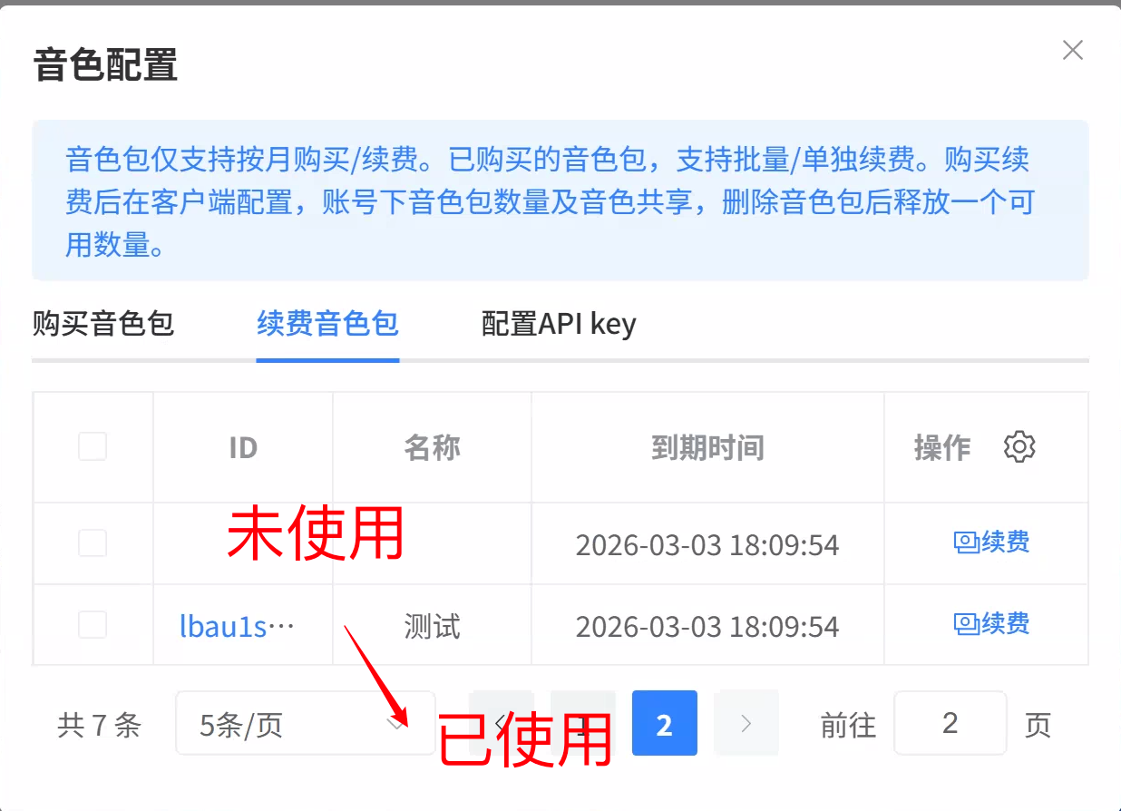 · 音色包需自行备份，到期后自动删除音色包，后台不支持导出