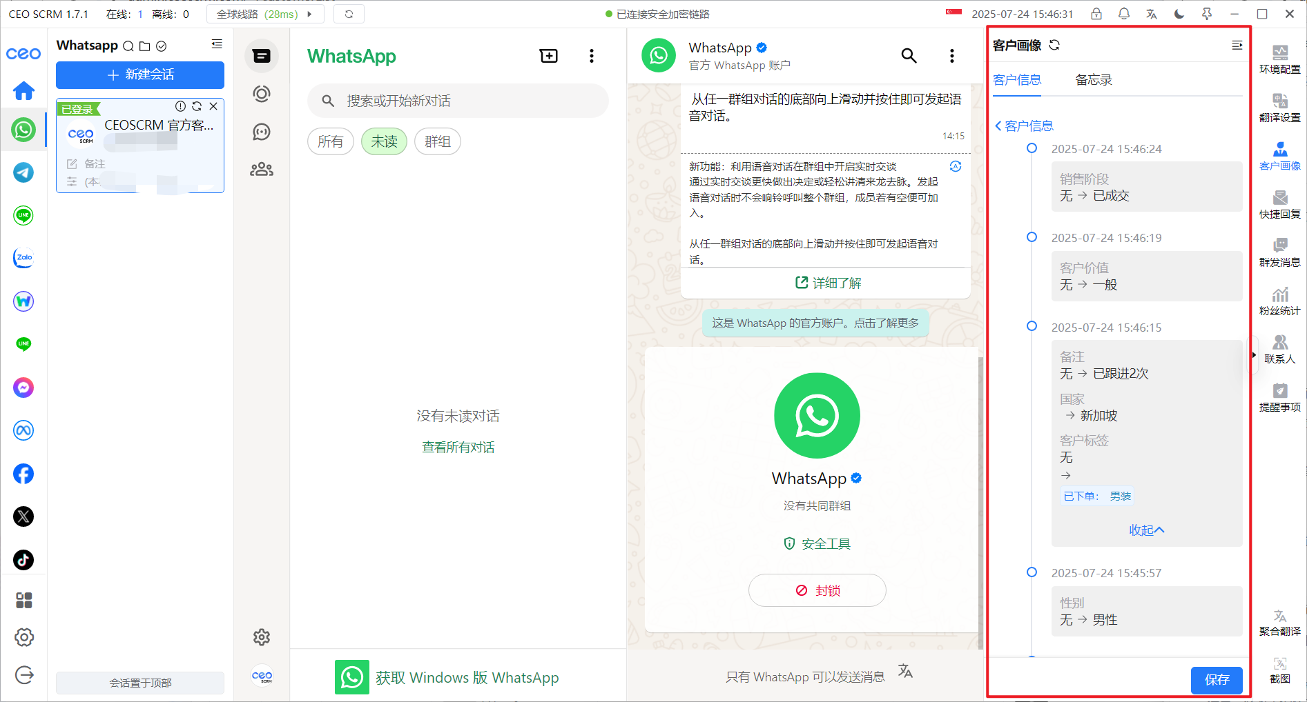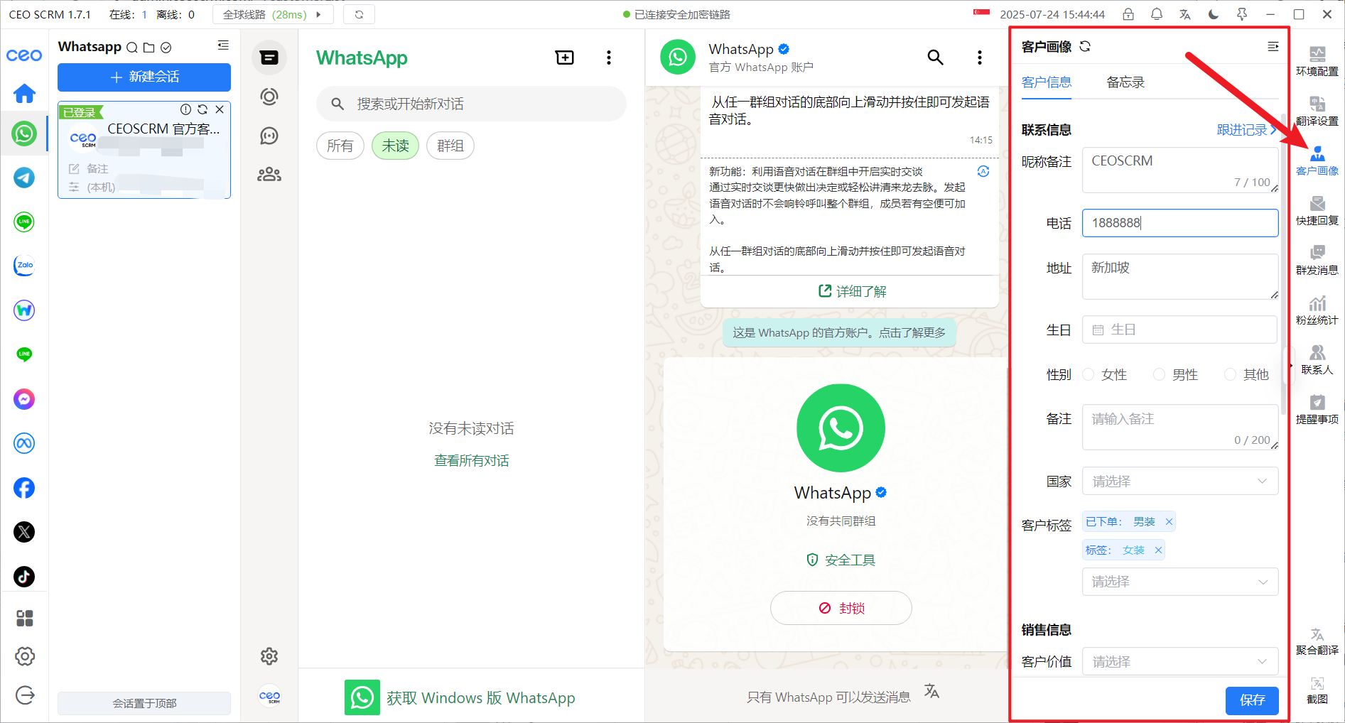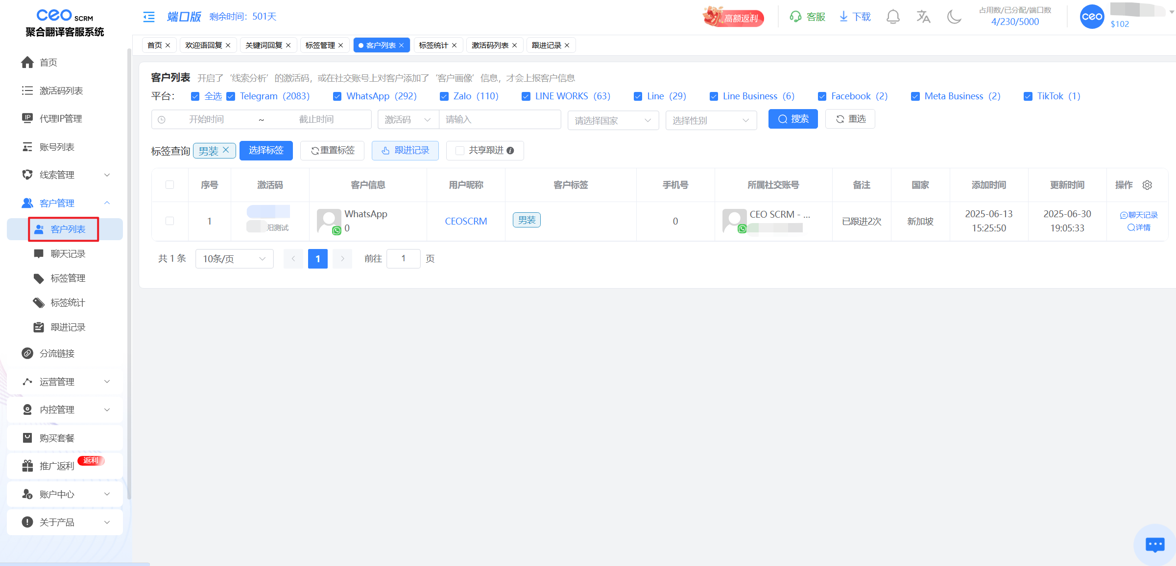 开启了‘线索分析’的激活码，或在社交账号上对客户添加了‘客户画像’信息，才会上报客户信息