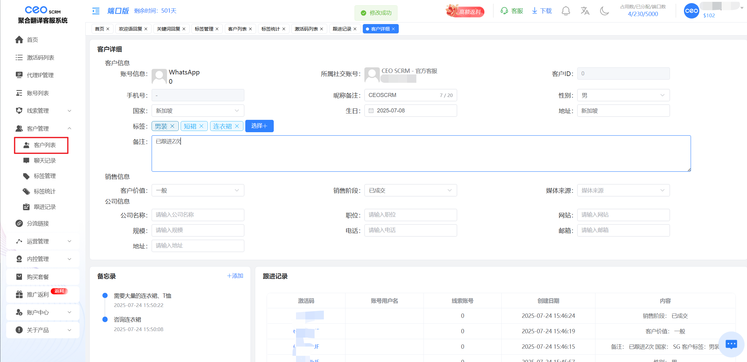 # 员工填客户信息、跟进记录