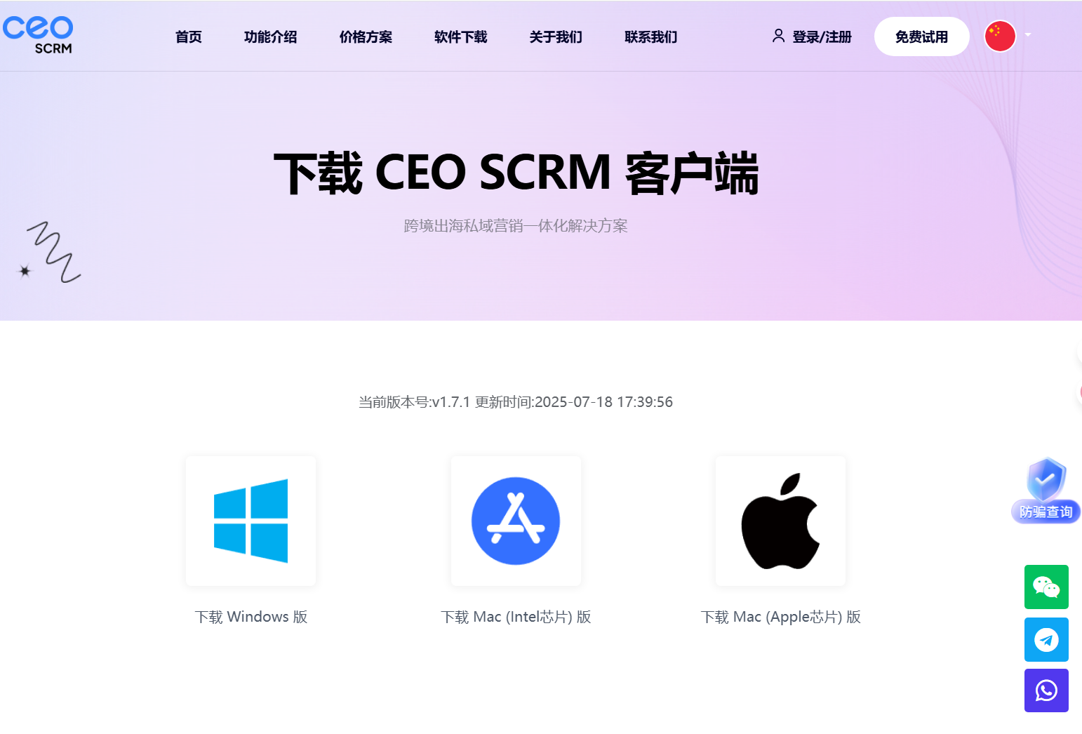 4、桌面端下载（Windows或Mac） <https://www.scrmceo.com/download.html>