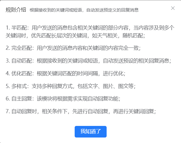 5、关键词回复的规则