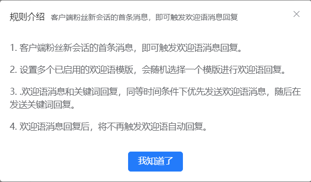 6、欢迎语回复的规则
